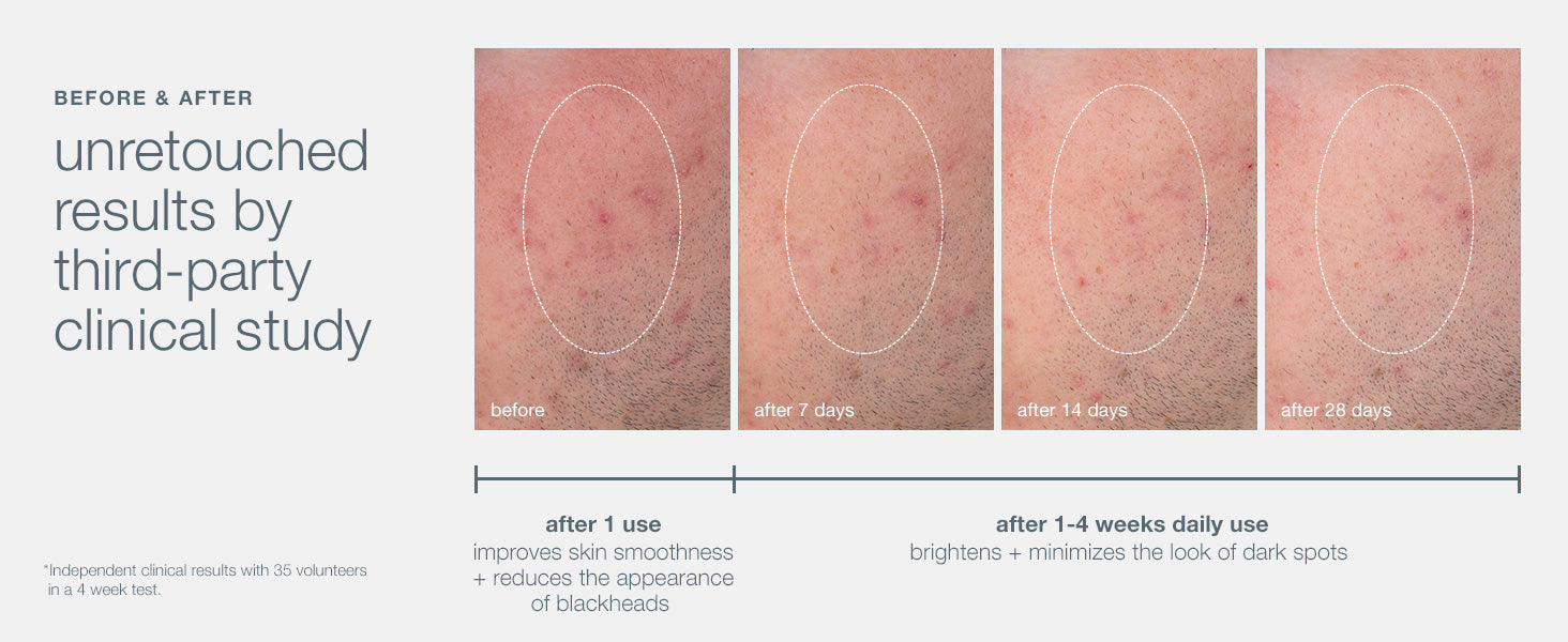 In just 1-7 days⏳, you’ll notice smoother skin and a significant reduction in blackheads* — proven by a 4-week clinical trial with 35 volunteers.