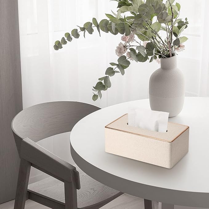 Premium Quality: Our rectangular tissue box cover is meticulously crafted with a built-in high-density fiberboard and a high-grade leather exterior, known for its exceptional durability and long-lasting performance. It adds a touch of elegance to any room or office space.